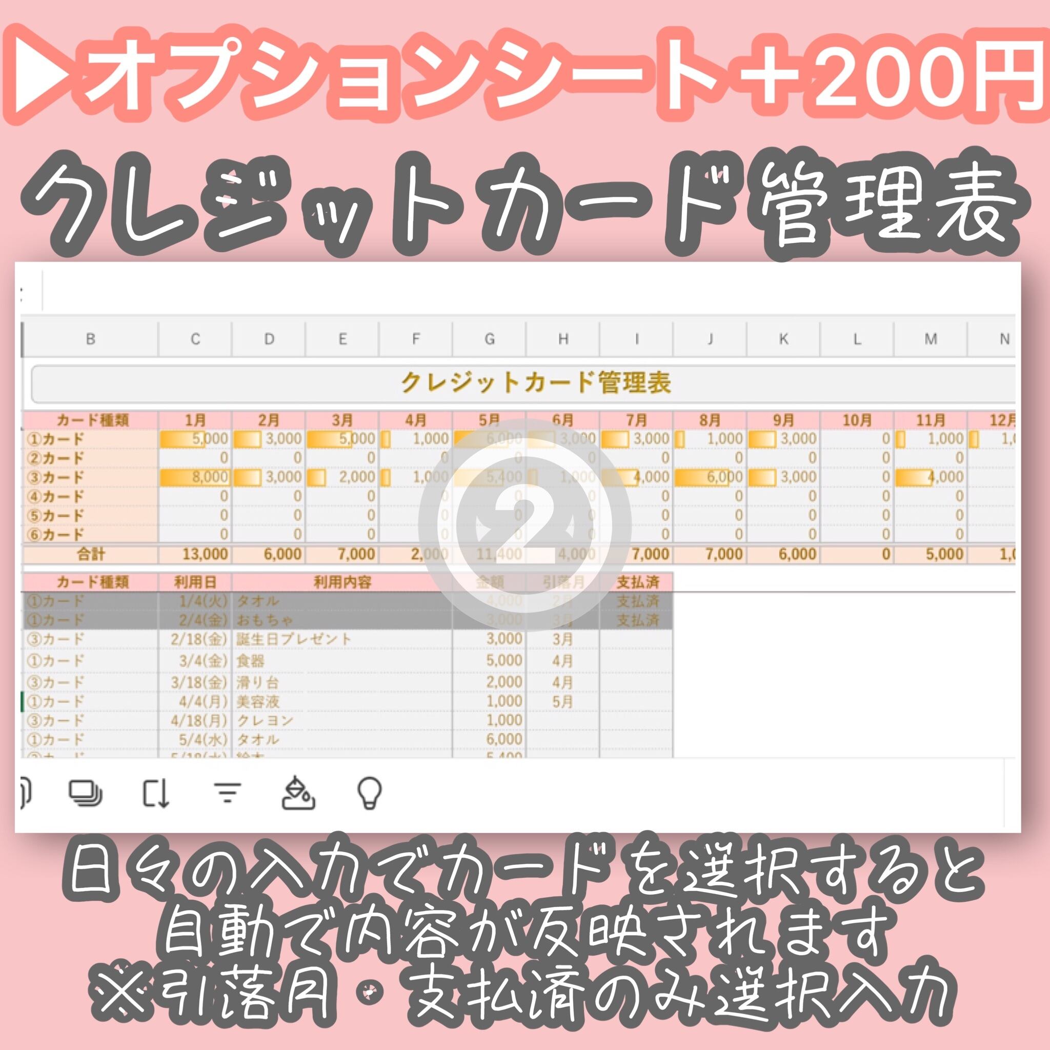(2)クレジットカード管理シート 《+200円》