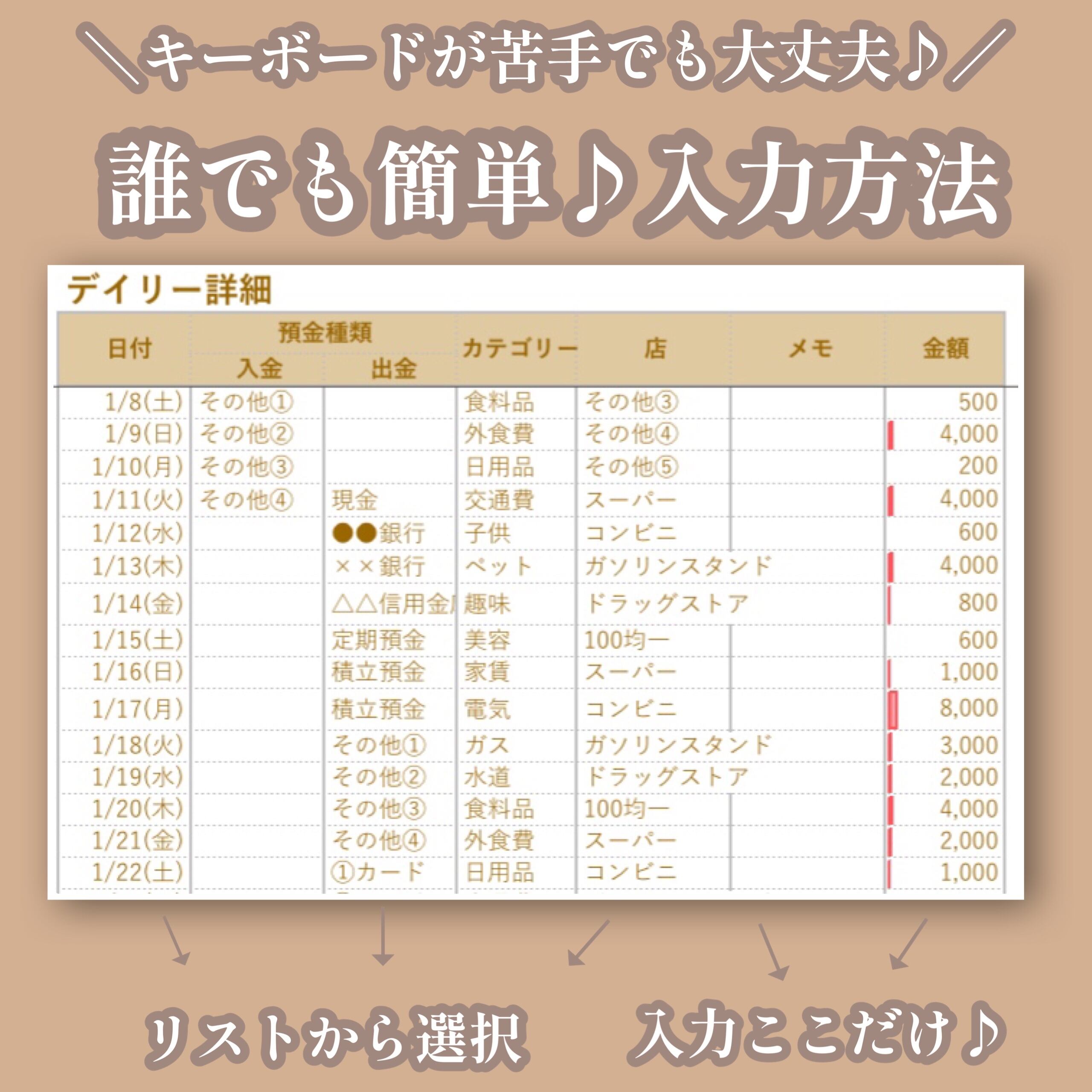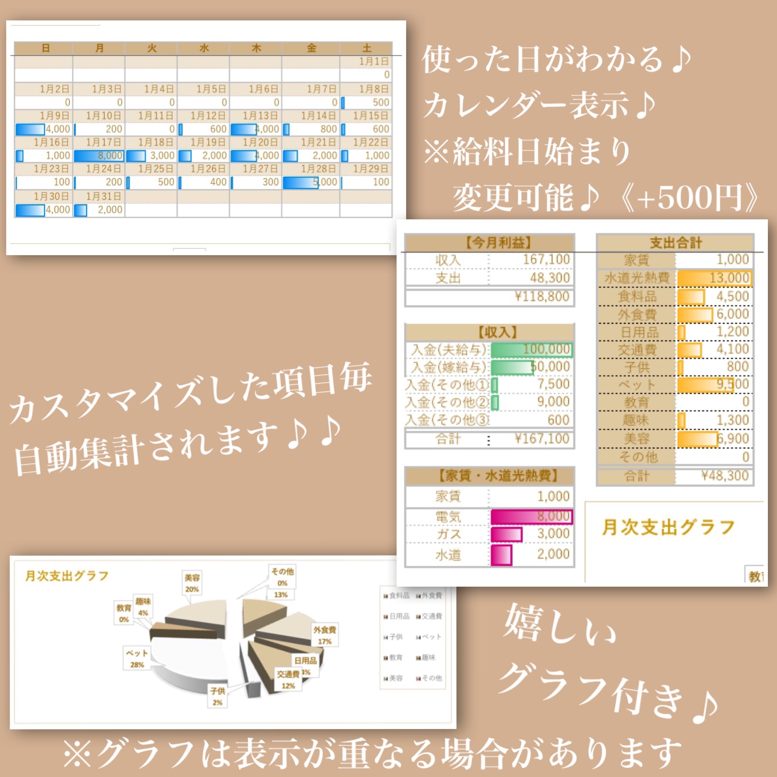 ●オーダー用●【シンプルブラウン♡Excel家計簿フォーマット♡】本格可愛い自動分析Excel家計簿♡開始月自由いつでも始められる♡オプション組合せ自由♡