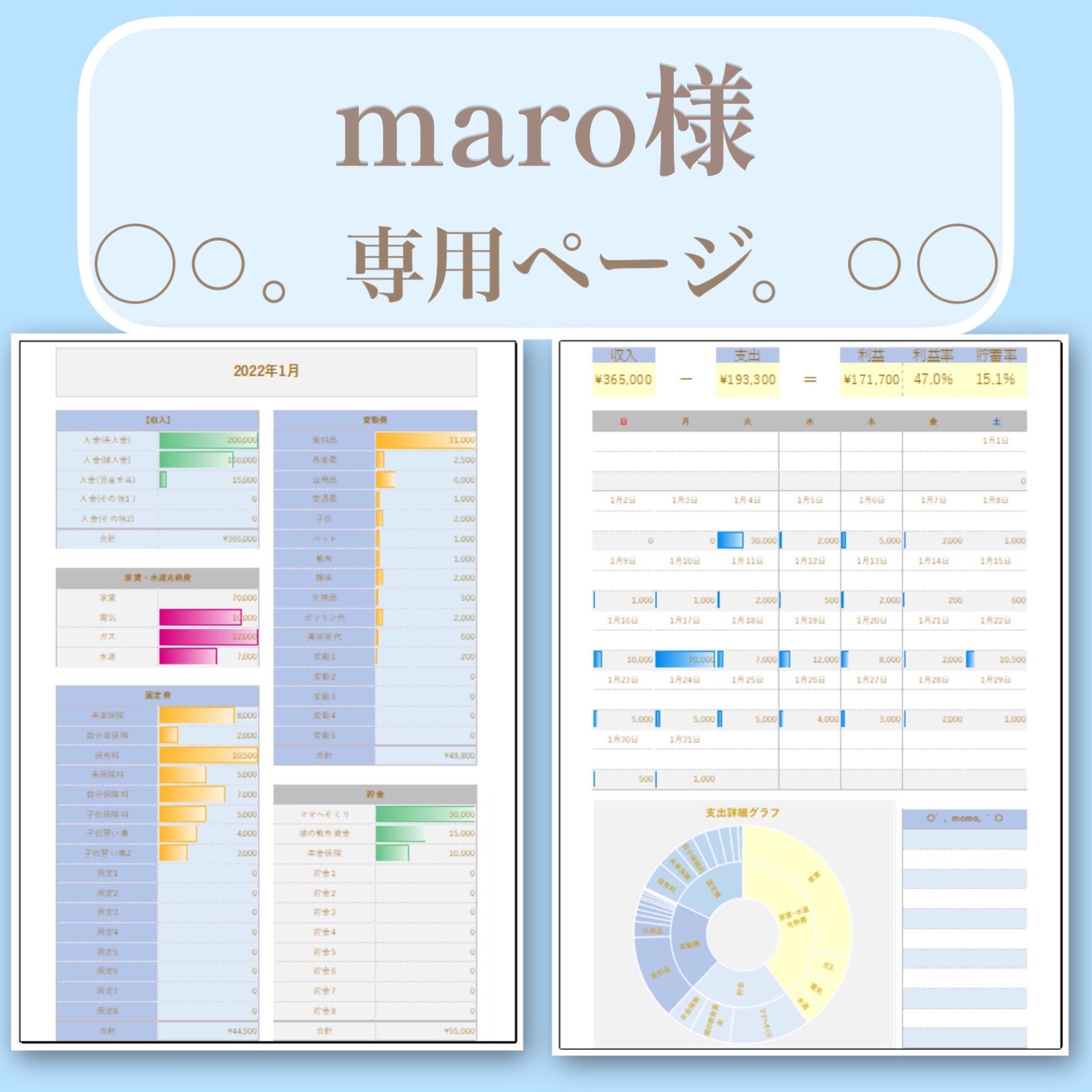 【maro様専用】Excel家計簿フォーマット♡本格可愛い自動分析Excel家計簿♡パステルブルー