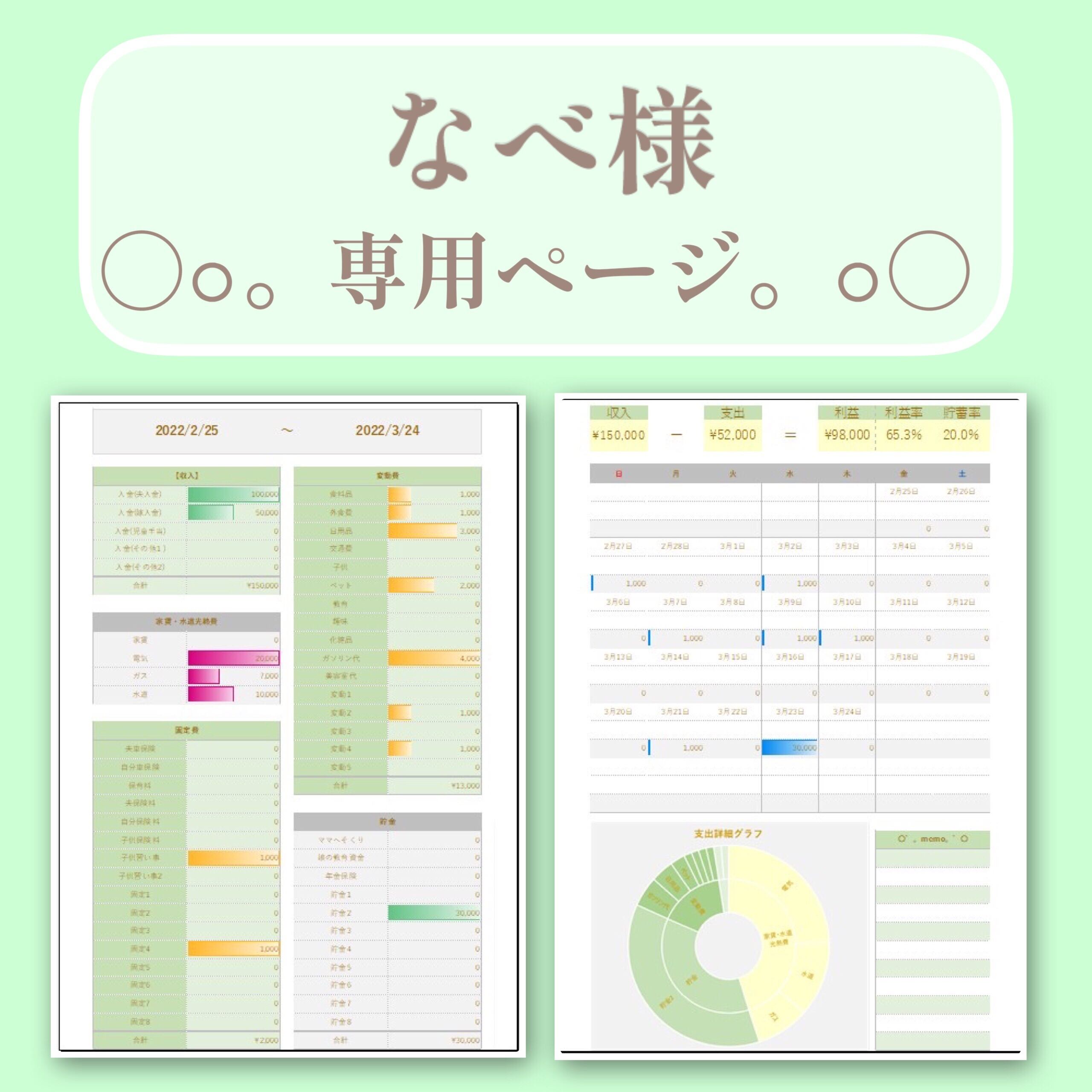 【なべ様専用】Excel家計簿