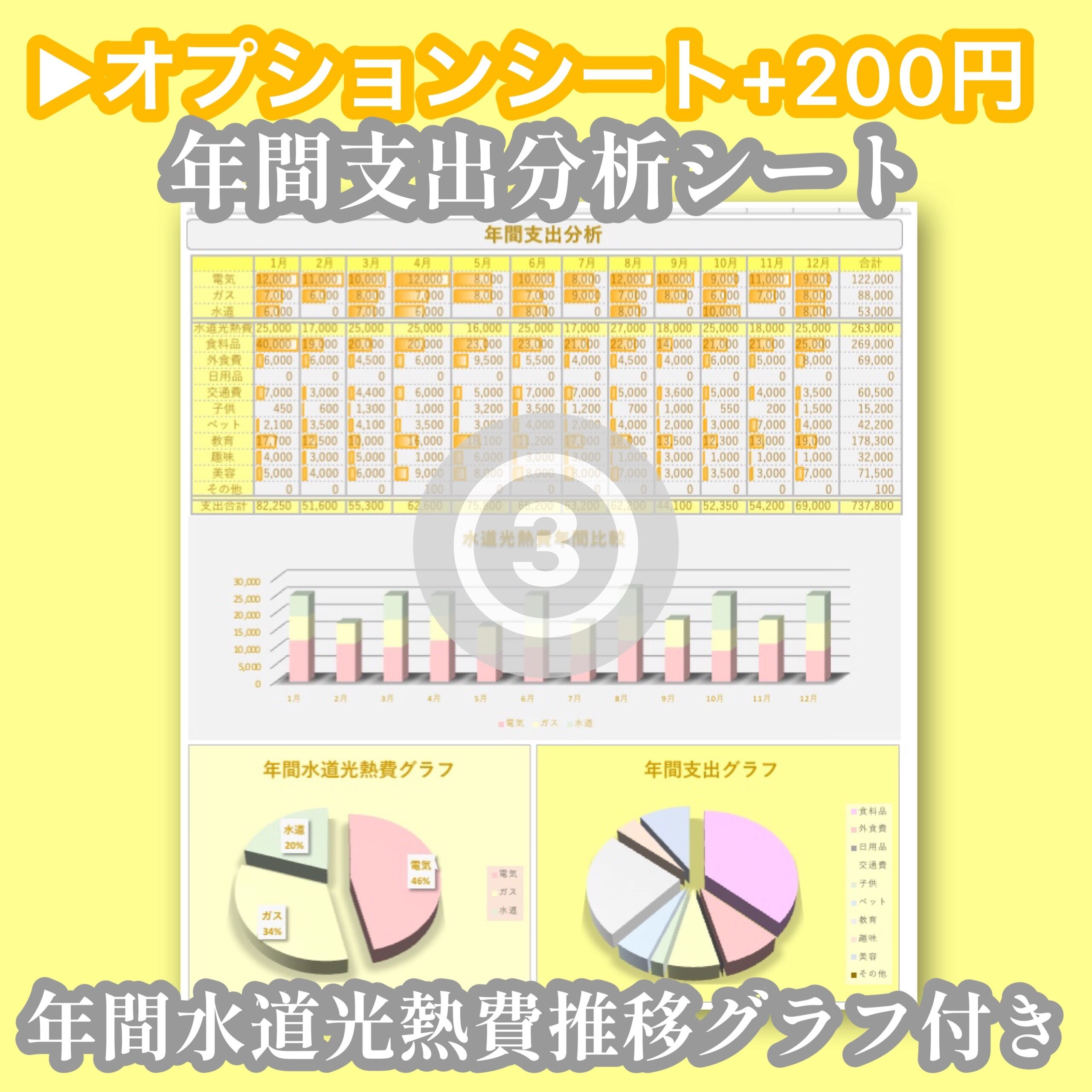 (3)年間支出《+200円》